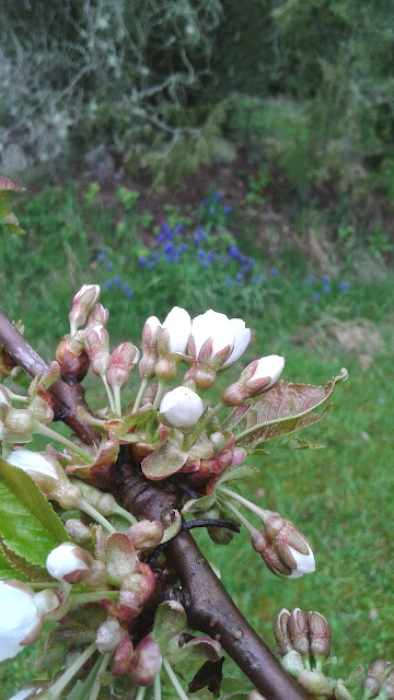 Det har gått fort de senaste veckorna, från små gröna knoppar till blad och nu ett träd fullt med blomknoppar och blommor med underbara doft. Mitt körsbärsträd har inte burit så mycket frukt och jag tror att fåglarna har hunnit före mig varje år sedan jag flyttade hit men blommorna kan jag njuta av och det gör jag i fulla drag! Jag firar mitt eget lilla Sakura, körsbärsblommornas dag, här mitt i de småländska skogarna något försenat men dock.